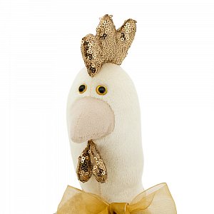 Познакомьтесь – это Курочка Злата. Злата всегда сияет как солнышко. И это не только потому что у нее прекрасный золотой гребешок и идеальное блестящее золотое платье, украшенное шикарным бантом. Злата - это самая добрая и умная курочка в мире, которая всегда успокоит хорошим советом и угостит чем-нибудь вкусненьким. Она всегда встречает гостей с улыбкой и провожает с маленьким подарком в руках. Она проста в общении, но поговаривают, что Злата настоящая принцесса, живущая вне дворца и это всё из-за её скромности. Всем хочется быть рядом с настоящей принцессой!
