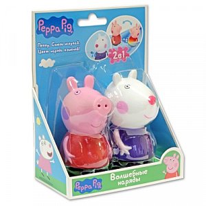 Очаровательная Свинка Пеппа и ее подруга Овечка Сьюзи восхитят любого малыша, ведь наряды на них не простые, а волшебные! Опустите игрушки в теплую воду, и, как по мановению волшебной палочки, красное платье Пеппы станет жёлтым, а фиолетовое платьице Сьюзи - розовым. Достаньте их из воды, подождите, пока игрушки высохнут, и они снова обретут первоначальный вид. Но и это еще не всё! Сожмите фигурки в руке, опустите их в ванну и разожмите, чтобы они наполнились водой. А теперь, от души смеясь, можно весело брызгаться водяными струйками. Такая игра увлечет любого ребенка, привьет ему любовь к водным процедурам и поможет развивать воображение.