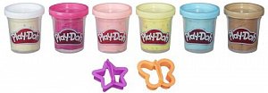 Игровой набор содержит: тарелку, рожок, лопатку, экструдер, ложку, подставку и 4 баночки Play-Doh.