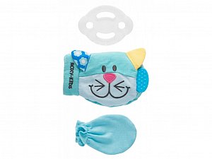 В комплект входит: рукавичка-игрушка, съемный прорезыватель и рукавичка-антицарапка.