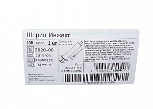 Шприц Инжект двухкомпонентный Люэр 23G 2 мл 100 шт.