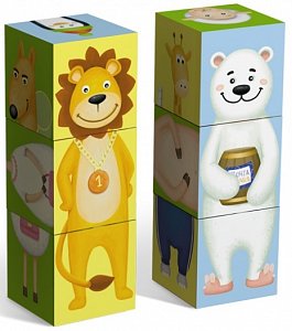 - Кубики устроены так, что сложение неверного расклада исключается, тем самым неудачи не смогут травмировать ребёнка. Пытаясь собрать изображение животного можно нечаянно создать совершенно новый вид. Например, «МедведеЛьва» или даже «ЖирафоОвцеЛьва».