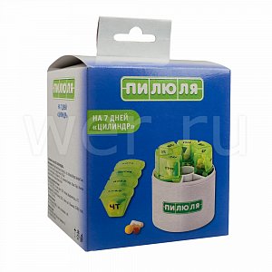 Содержит 7 отдельных контейнеров, которые соответствуют дням недели: ПН, ВТ, СР, ЧТ, ПТ, СБ и ВС. Каждый контейнер состоит из 4 отделений для распределения лекарств в соответствии с суточным режимом приема: утро, день, вечер и ночь. Для людей с ослабленным зрением нанесены символы Брайля.
