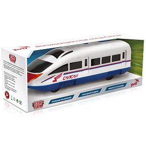 - Игрушка внешне напоминает поезд «Сапсан», который используется для перевозки пассажиров Российскими Железными Дорогами.