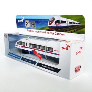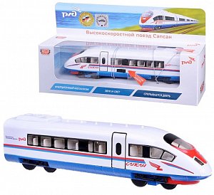 Поезд Сапсан РЖД, металлический инерционный, свет и звук, открываются двери (Технопарк, 40BC-WBsim)