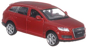 Металлическая тщательно исполненная модель Audi Q7 – является точной масштабной копией одноименного кроссовера. Игрушка выполнена с высокой степенью детализации, у неё функциональные двери, открыв которые можно рассмотреть салон авто. А инерционный механизм, позволяет придать ей скорость, слегка оттянув ее назад и отпустив.