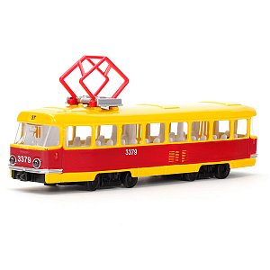 Великолепная модель ретро-трамвая, который колесил по улицам российских городов в советское время, сделан из пластика. Он в точности повторяет внешний вид и салон этого красно-жёлтого транспорта. Малыши будут с удовольствием играть с трамваем, у которого установлен инерционный механизм, световые и звуковые спецэффекты.