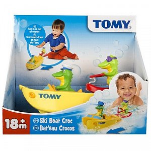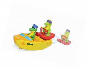 Развлечь ребёнка во время купания поможет игрушка для ванной от компании TOMY (Томи) – Крокодил на водных лыжах! В комплект игрушки входит лодочка, водные лыжи и два забавных крокодильчика, рассекающих водное пространство Вашей ванной! Яркая красочная игрушка насыщенных, привлекающих внимание малыша цветов, долго будет радовать Вашего ребёнка, не позволяя ему заскучать принимая ванну!