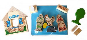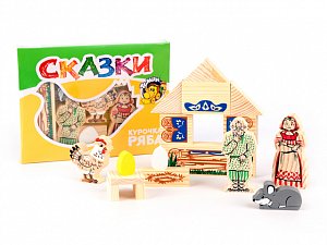 - Набор создан по мотивам русской народной сказки «Курочка ряба» и представлен фигурками персонажей произведения и декорациями к сказке;