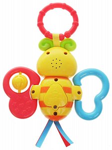 Потрясите погремушку - и вы услышите, как гремят бусинки. Разноцветные шарики не дадут скучать малышу, также пчелка поет песенки из мультфильмов и мигает, это вызывает интерес и привлекает внимание малыша.