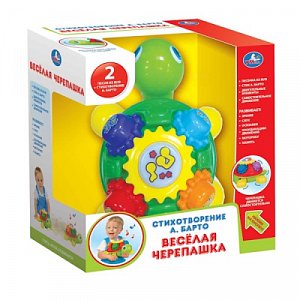 Яркая игрушка в виде забавной черепашки предназначена для самых маленьких. Она может шевелить лапами, хвостом, головой и передвигаться по ровной поверхности самостоятельно. При нажатии на музыкальную кнопку ребенок услышит 2 веселые песенки и стихотворение Агнии Барто. Шестеренки на панцире можно крутить. Игрушка выполнена из яркого качественного пластика и оснащена световыми эффектами. Она подарит вашему малышу массу положительных эмоций. Черепашка упакована в картонную коробку с окном.