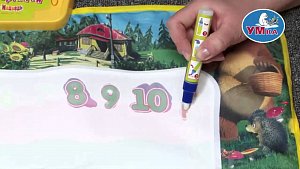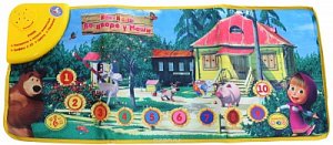 Лицевая сторона коврика оформлена изображениями домика Мишки и персонажей популярного мультсериала "Маша и Медведь". При нажатии на изображение определенного животного ребенок услышит название данного животного или издаваемый им звук. Нажимая на разноцветные кружки в нижней части коврика, малыш познакомится с цифрами от одного до десяти и разными цветами. Послушать веселую песенку из мультфильма ребенок сможет, нажав на значок с нотками.