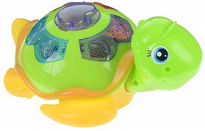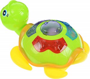 - Черепашка снабжена световыми и звуковыми эффектами, на её корпусе находится функциональная кнопка, нажимая на которые ребёнок сможет прослушать песни В. Шаинского.