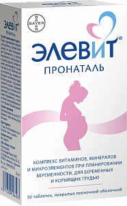 Элевит® Пронаталь представляет собой лекарственный препарат, содержащий 12 основ-ных витаминов, 4 минерала и 3 микроэлемента. Количественное содержание витаминов и минералов соответствует дозам, которые рекомендованы к применению в период бере-менности и грудного вскармливания.Противопоказания