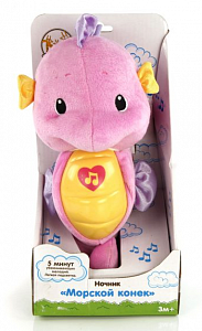Симпатичный морской конек - это и ночник, и мягкая игрушка. Такая игрушка станет прекрасным подарком малышу, который боится засыпать в темноте. Ведь стоит нажать коньку на животик, как заиграет приятная убаюкивающая мелодия и животик засветится мягким светом.
