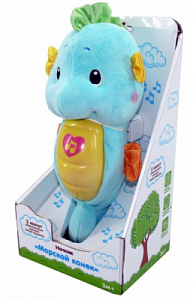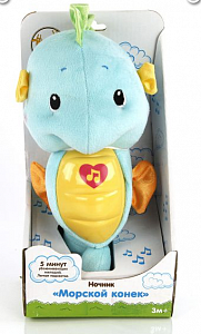 Симпатичный морской конек - это и ночник, и мягкая игрушка. Такая игрушка станет прекрасным подарком малышу, который боится засыпать в темноте. Ведь стоит нажать коньку на животик, как заиграет приятная убаюкивающая мелодия и животик засветится мягким светом.