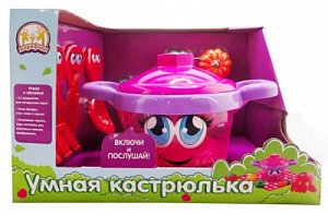 "Умная кастрюлька" - интерактивная развивающая игрушка, которая варит суп понарошку и распевает веселые песенки. Она знает все-все овощи, может их назвать и сосчитать, достаточно перевести переключатель в режим "Счет" или "Цвета". Кастрюлька запоет, если в нее положить разноцветные овощи и помешивать "суп" волшебной ложкой.